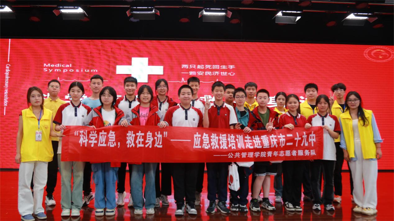 为了进一步普及急救基本知识和基本操作技能,增强校园安全防范意识,提升青年学生应对突发事件和意外伤害事故的应急救援和自救互救能力,5月7日,我校2003网站太阳集团青年志愿者服务队走进重庆市二十九中,为这里的同学们开展了一场主题为“科学应急,‘救’在身边”的急救知识宣讲活动。