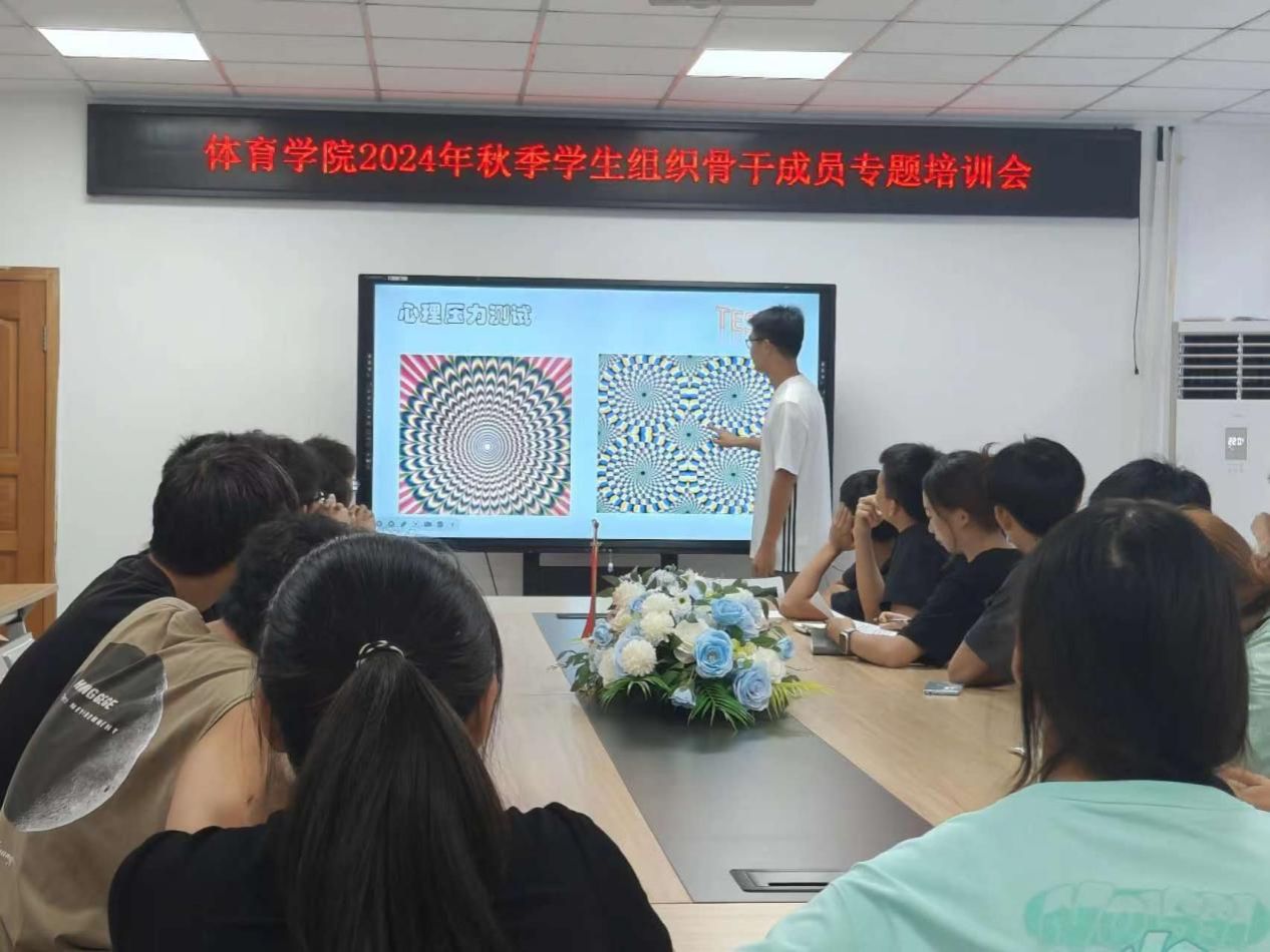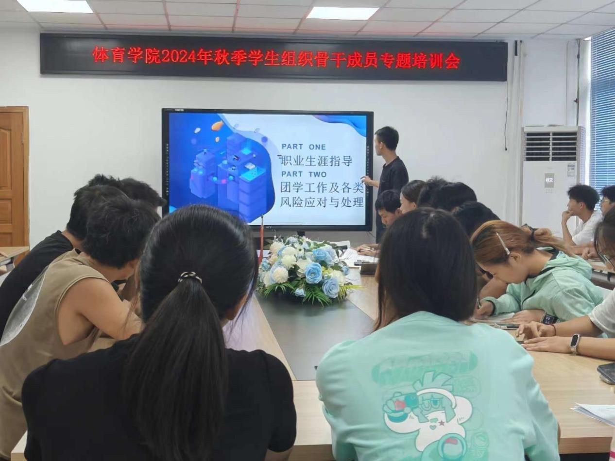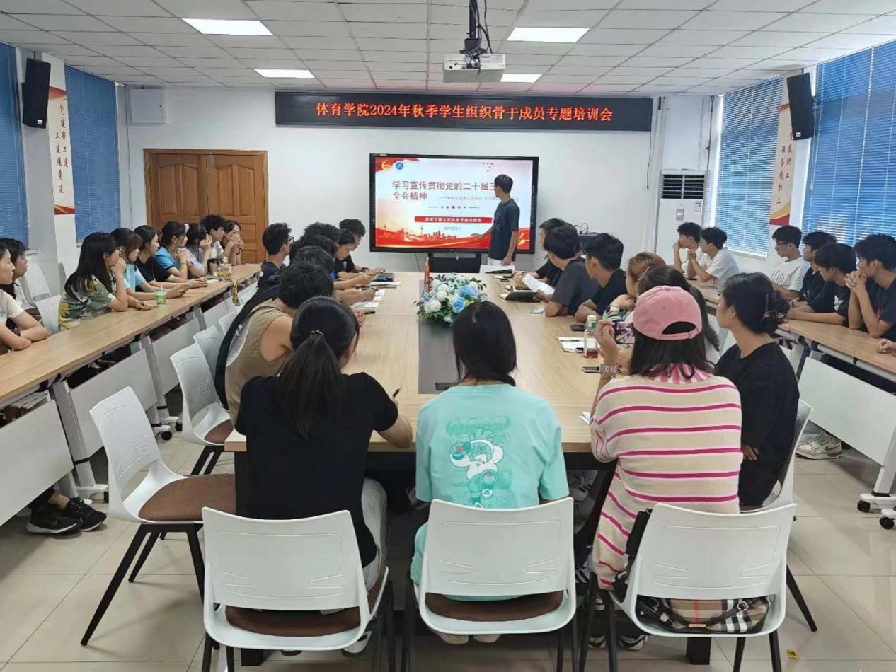 为深入学习贯彻党的二十届三中全会精神,深刻领会习近平总书记关于青年工作的重要论述,明确新学期团属学生组织的工作方向,并持续提升团学组织服务师生的水平,9月29日,体育学院分团委于学院会议室召开了2024年秋季学生组织骨干成员专题培训会。体育学院分团委书记傅杨,学院学生会全体成员、青年志愿者服务队负责人、学院所属学生社团负责人参会。会议由体育学院2022级体育学专业冉妍主持。