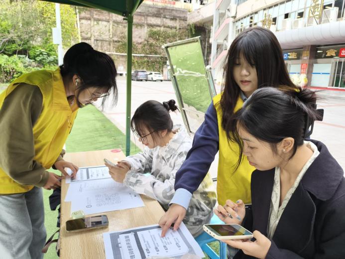 活动期间,志愿者们分别在江北校区柏园及南岸校区七教附近设立问卷调查站点,他们热情洋溢地邀请过往同学停下脚步,积极参与到心理健康调查中来。问卷内容精心设计,涵盖了大学生心理健康现状、心理压力源、应对策略等多个维度。填写过程中,志愿者们明确分工、高效合作,并本着公平、公正、公开的原则,为同学们提供了详细的问卷填写指导,从问卷的获取、填写到上交,志愿者们全程陪伴,确保了本次活动顺利进行。
