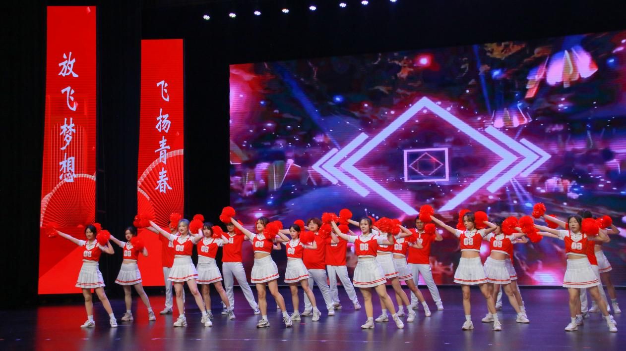 大赛现场,伴随着轻快昂扬的音乐旋律,各参赛队伍身着设计新颖、动感四溢的队服,在璀璨的灯光下竞相展现风采。各队成员间默契配合,激情四溢,以满腔的热情和卓越的表现力,将现场气氛推向高潮,生动诠释了同学们的无限青春活力与卓越创造力。其中,文新学院啦啦操队伍经过为期一月的精心编排和刻苦训练,凭借整齐划一的动作和饱满的精神面貌在赛场上大放异彩,赢得了在场观众与评委们的阵阵掌声,充分展现了我院学子积极向上、朝气蓬勃、勇于挑战的青春形象。