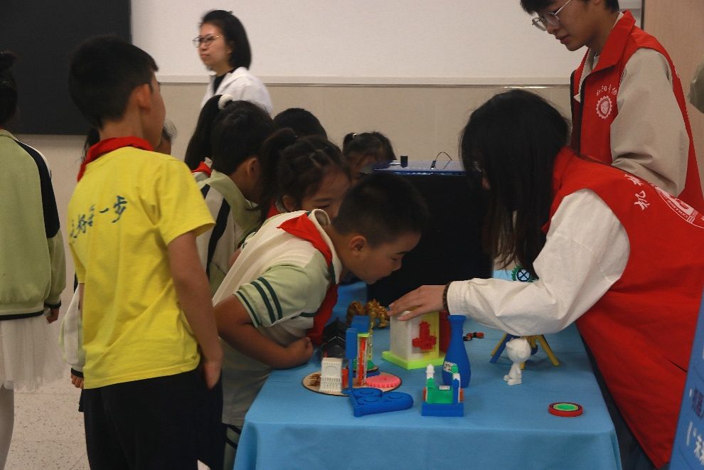 活动现场,机械工程学院的学生们带来了NAO机器人、循迹小车、避障小车、3D打印、擂台机器人等5项自主研发的科技成果,这些充满科技感与趣味性的展品,让小朋友们近距离感受到了科技的魅力,激发了他们探索未知世界的浓厚兴趣。