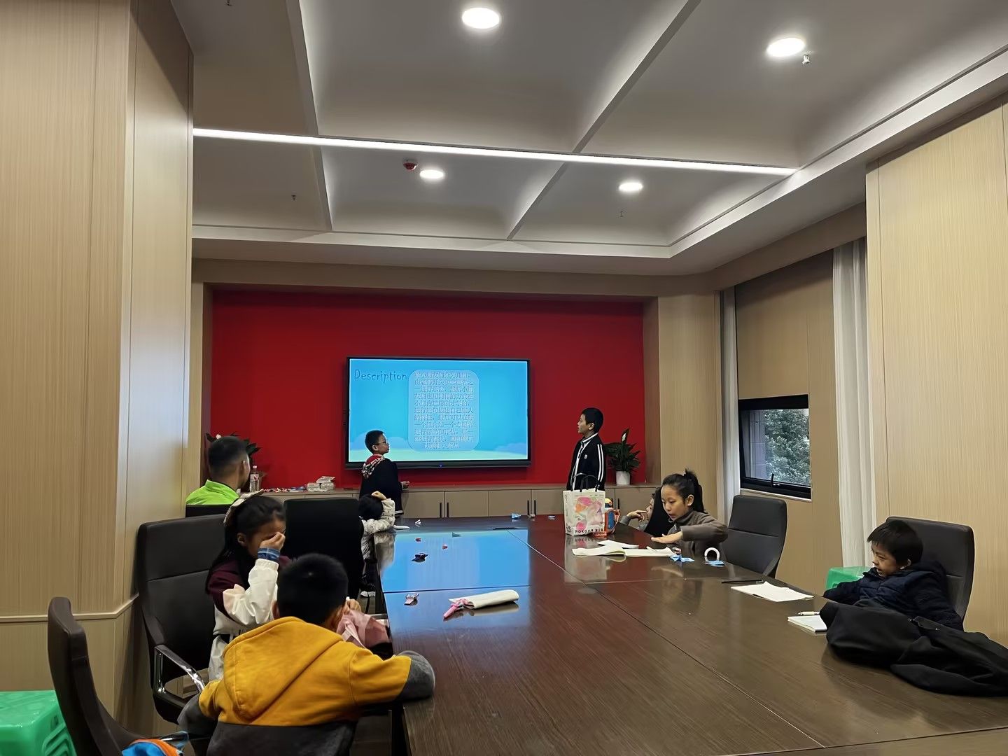 本次活动围绕Family members的主题,展开以下环节。首先主持人进行自我介绍并介绍主题,用相关的英文小动画开始课堂教学。第二环节,由主持人给出与主题相关的图片单词,志愿者们教小朋友们读写,并在此基础上尝试造句。志愿者们耐心教授,小朋友模仿着读音,并进行了简单造句,每个人的参与度都很高,大家互相帮助,互相学习。第三环节,通过做游戏的方式来加深小朋友们的印象。由志愿者和主持人先进行示范,然后分组进行PK,小朋友们运用所学,描述自己家庭成员的特征,由志愿者进行评估和提供帮助,完成快的小组获胜,整组获得小奖品。小朋友们兴高采烈,互相配合,课堂活跃度达到了高潮,小朋友们记的单词也越来越多。最后由主持人带领小朋友重新回顾单词,并进行提问,回答多且正确的小朋友会获得小礼品。结尾是志愿者对小朋友的作业进行辅导和帮助。