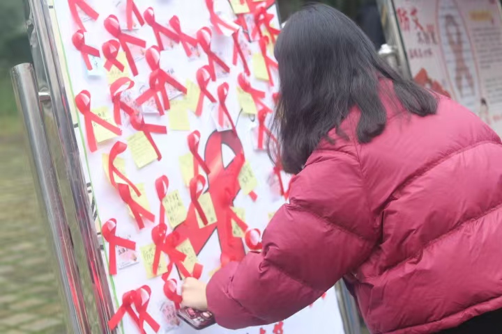 志愿者们身着统一服装,引导大家参与答题抽奖活动,以此来普及预防艾滋病的相关知识。随后,进行了“共享青春祝福贴,传递爱的红丝带”活动,一张便利贴和一根红丝带,对生命的尊重和关爱而变得更有意义,每一张便利贴都承载着一份对防艾的关注、一份对生命的尊重。那记录细腻的祝福的便利贴,仿佛能触摸到书写者的真心与关怀。飘扬的红丝带像一条纽带,象征着对艾滋病病毒感染者和病人的关心与支持,也象征着对生命的热爱和对平等的追求,鼓励大家用“心”来参与艾滋病防治工作。