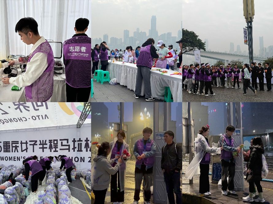 3月19日至23日,通识学院组织308名青年志愿者为2025重庆女子半程马拉松赛事提供全方位保障。本次赛事由重庆市江北区人民政府、重庆市妇女联合会等单位联合主办,吸引了全国上万名跑者参与。作为赛事志愿服务的中坚力量,通识学院志愿者以高度的责任感和专业素养,分布在问询服务、芯片计时、存取包管理、嘉宾接待引导等15个岗位。志愿者们以严谨态度和周到服务,构筑起赛事运行的坚实后盾。