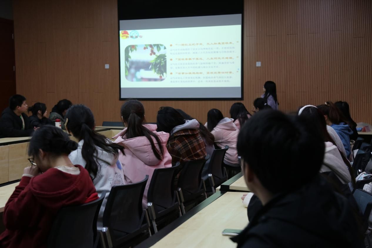 活动伊始,四位分享官携书登台,以真挚的讲述为观众打开了一扇扇通往文学世界的门。侯永玲同学带来卡勒德·胡赛尼的《追风筝的人》。她以“风筝”为线索,剖析了主人公阿米尔在背叛与救赎中的挣扎。现场听众跟随她的解读,在战火与童真交织的叙事里,触摸到人性最深处的柔软与坚韧。 王议梅同学分享了散文集《去有花的地方》。“生活的答案或许藏在一朵花的开落里”,王议梅引用书中的句子,将作者对自然与生命的哲思娓娓道来:“当我们把脚步放慢成标点符号,才能在城市的褶皱里,发现那些被晨曦吻醒的露珠。”万承凤同学分享了夏洛蒂·勃朗特的传世之作《简爱》“我贫穷、卑微、不美,但当我们的灵魂穿过坟墓站在上帝面前时,我们是平等的”,万承凤以“尊严与爱的天平”为切入点,剖析了简爱在逆境中坚守自我的精神内核。霍晶晶同学分享了马伯庸的历史小说《长安的荔枝》。霍晶晶通过小人物李善德运送荔枝的跌宕命运,揭示了“一事功成万头秃”的残酷现实。现场笑声与沉思交织,展现出跨界解读的独特魅力。