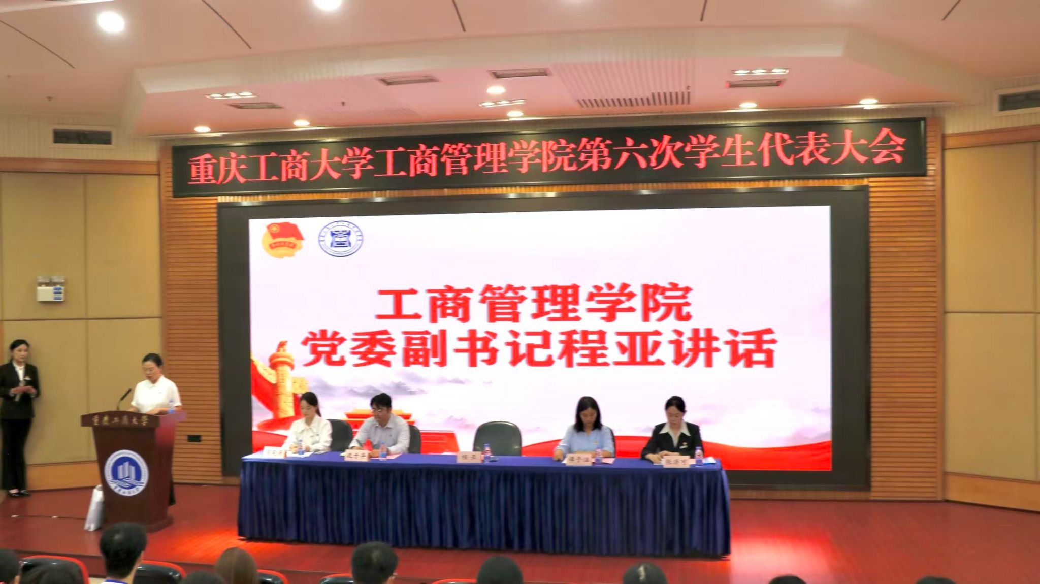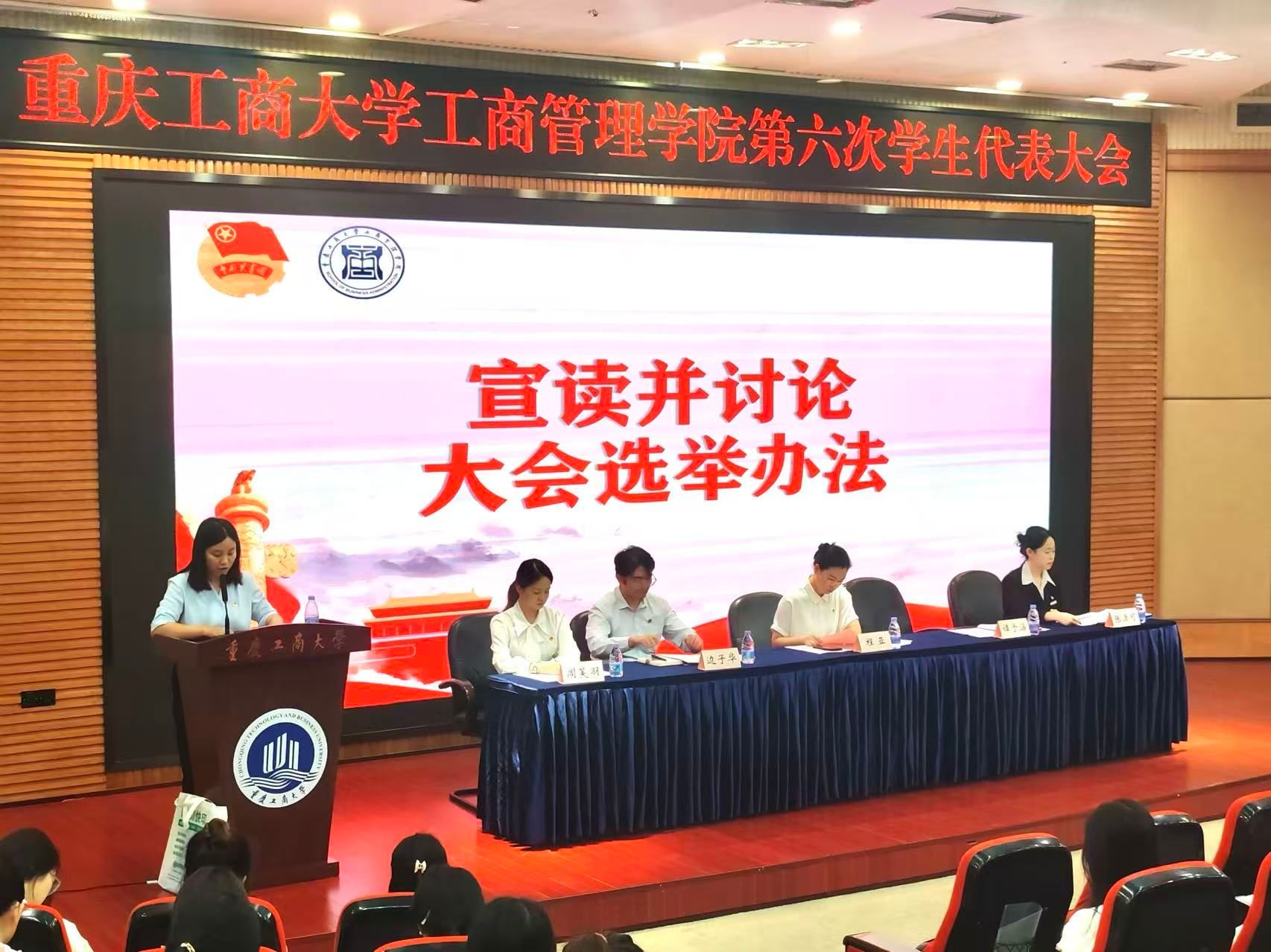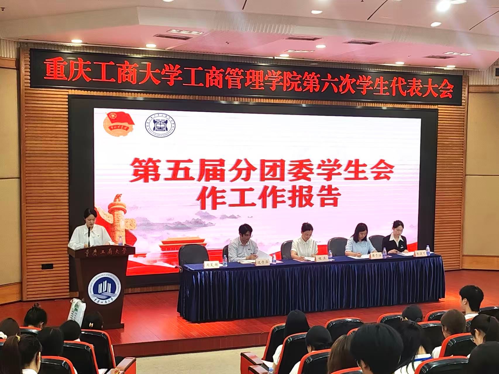 大会在庄严的国歌声中拉开帷幕。首先由校学生会主席团成员张潇可宣读《共青团重庆工商大学关于同意召开第六次学生代表大会的批复》。接着,学院党委副书记程亚讲话,对过去一年学院学生会的工作给予了充分肯定,并对未来的工作提出了殷切期望。她希望,同学们以本次学代会为契机,以更加饱满的热情、更加昂扬的斗志,积极投身到学院的各项工作中去;坚定理想信念,将个人的成长与祖国的发展紧密结合起来,努力成长为对党和人民忠诚可靠、堪当时代重任的栋梁之才;勤奋学习,在知识的海洋中汲取养分,不断提高自身的专业素养和综合能力,为将来投身各行各业打下坚实的基础;勇于担当,敢于面对困难和挑战,在实践中锻炼自己,在奋斗中实现自己的人生价值;乐于奉献,积极参与志愿服务和社会实践活动,为他人、为社会贡献自己的力量,用实际行动诠释新时代大学生的责任与担当。随后,上届分团委学生副书记周芙羽作工作报告,全面回顾了过去一年的工作成果和未来发展。分团委书记谭予涵宣读《重庆工商大学工商管理学院第六次学生代表大会选举办法》,并推选总监票人、监票人,总计票人、计票人,最终以不记名投票和差额选举的方式选举明星、肖悦和楚佳彤等三人为工商管理学院第六届分团委学生会主席团成员。