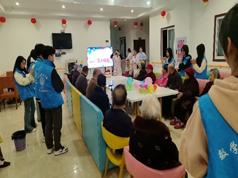 活动过程中,志愿者们有序开展了多项服务。志愿者与老人们亲切交流,耐心倾听老人们的故事与心声,与行动不便、听力障碍的老人们全程相伴,慰问老人们的情况,引领行动不便的老人就座。随后,志愿者们联合养老中心服务人员为老人们举行11月的生日会,并一起为老人们送唱生日快乐歌。整个过程,老人们脸上洋溢的笑容,成为此次活动最动人的画面。