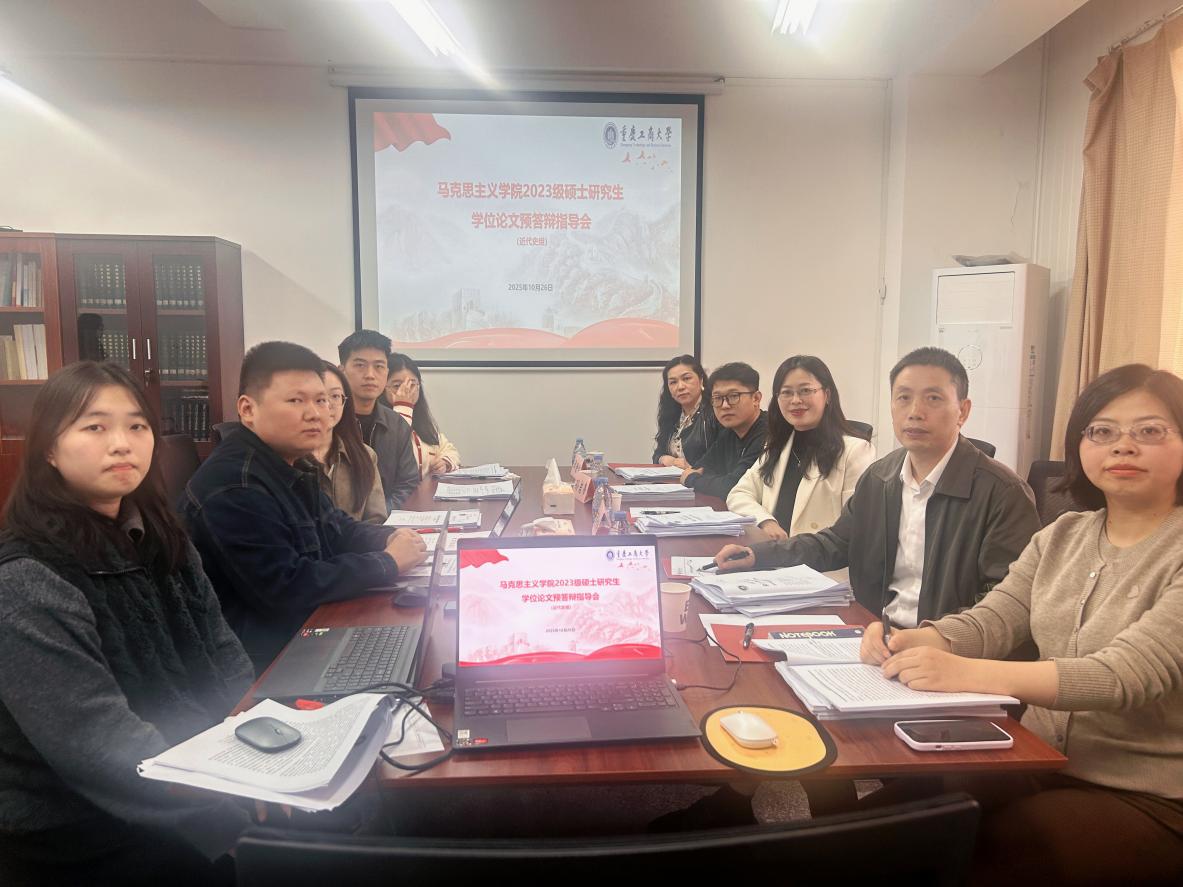10月26日,马克思主义学院召开2023级思想政治教育和中国近现代史基本问题研究专业硕士研究生预答辩指导会,特邀重庆邮电大学徐仲伟教授、重庆大学徐鲲教授、重庆医科大学冯磊教授、西南政法大学商爱玲教授担任预答辩主席。10月30日,召开2023级马克思主义基本原理专业、马克思主义中国化研究专业硕士研究生预答辩指导会,特邀西南大学王丰教授、重庆师范大学孟东方教授担任预答辩主席,为同学们提供高水平的学术指导。