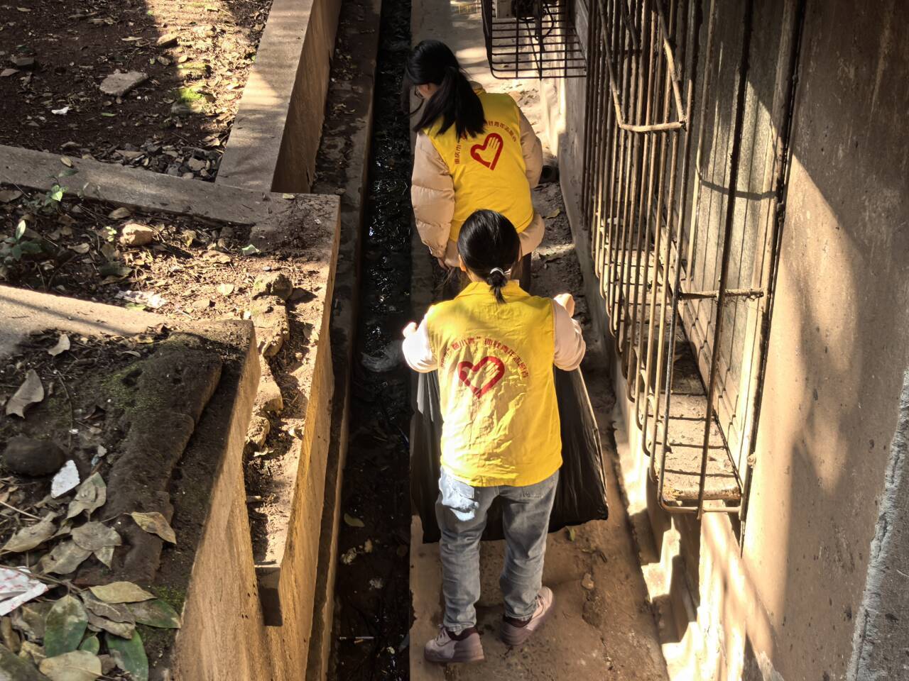 活动伊始,志愿者们在学校门口集合,清点人员与物资后有序前往活动地点。抵达红旗开关厂后,大家迅速熟悉场地,明确各组成员以及清洁区域,有条不紊地领取扫帚、簸箕等清洁工具,随后前往清扫地点。活动中期,志愿者们分组开展清洁工作。楼道组清扫楼栋角落的落叶杂物,让楼道恢复整洁;保洁组擦拭扶梯上的灰尘,使其清洁干净;环境组清理街道及绿化带边缘的垃圾,为社区添上一抹亮色。在劳动过程中,志愿者们与厂区老人们进行了深入的交流,为他们的独居生活增添了几分乐趣,现场气氛温馨,暖意融融,宣传部人员及时用镜头记录下一个个暖心的画面与志愿者们的劳动瞬间。