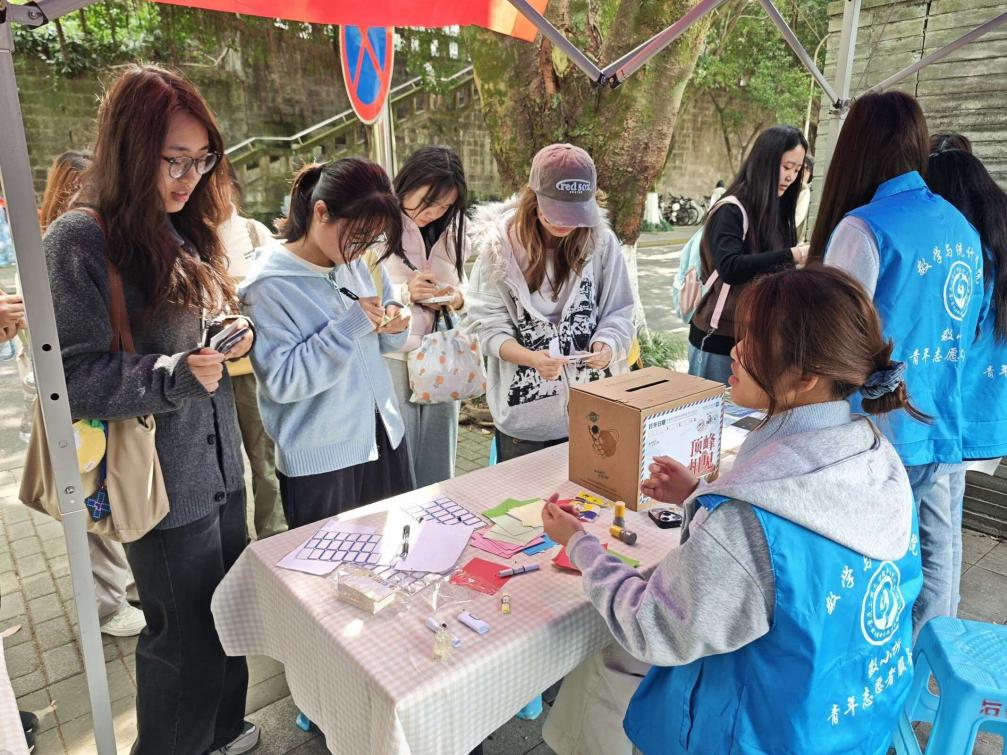 活动以市集形式设置四个特色摊位,以趣味互动的形式,吸引了大批师生热情参与,营造了浓厚的校园互助氛围。在“反诈盲盒局”,参与者通过抽取盲盒中的反诈知识卡片,现场答题闯关,学习防骗技巧,赢取精美纪念品;“旧物交换站”则让同学们将闲置物品带到现场,经志愿者核验后分类展示,交换或捐赠给有需要的人,倡导绿色互助理念;“健康小诊室”通过“吹气球运纸杯”的气息训练游戏,锻炼学生的肺活量与核心肌群,倡导健康生活方式;而“互动漂流瓶”环节中,同学们匿名写下情绪、困惑或祝福,投入漂流瓶,随机抽取他人的心愿并给予回应,传递温暖与善意。