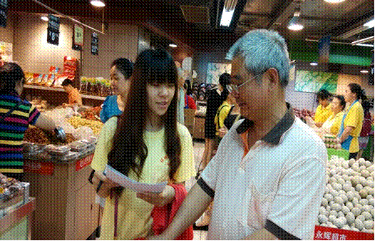 实践团成员在永辉超市进行有机农产品社会接受度调查