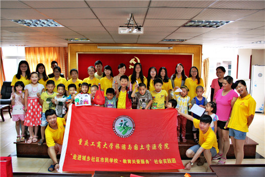7月3日,旅游与国土资源学院“走进城乡社区市民学校,教育关爱服务”社会实践团在铜梁县南城街道桐子社区多功能厅举办了爱心课堂活动,并邀请社区市民学校的学生和留守儿童前来参加活动。