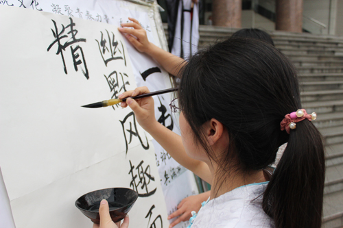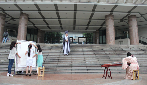 “课余,三人并行而出,中间一人持书而立,身着古装”,5月13日,我校启智楼前经济学院“快闪”活动精彩的一幕。经济学子通过朗诵、古筝、书法三种形式唤起师生对传统文化的记忆,在校园之中举行了一次别开生面的“穿越版”快闪,通过表演奖传统文化带到同学们身边,让古典文化在传承中与现代相交融,绽放新的光彩。