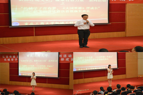 5月20日晚19:00,由机械工程学院分团委主办的“大国重器”演讲比赛在7200报告厅举行。机械工程学院党总支书记陈翠兰、副院长王立存、分团委书记邢月军、学团办主任黄杰渝等担任大赛评委,机械工程学院全体2012级、2013级学生观看了比赛。