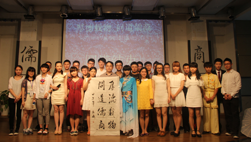 5月23日下午14:00,由校团委主办、国际商学院分团委承办的“厚德载物·问道儒商”特色团日活动在国际商学院教学楼407多功能厅举行。国际商学院分团委书记杨波及国际商学院2012、2013级全体同学观看了特色团日活动。