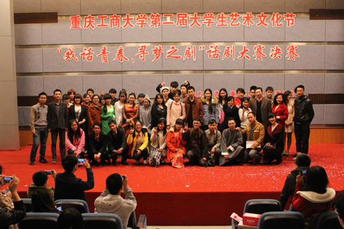 3月23日晚,由校团委主办、文学与新闻学院承办的我校第二届大学生文化艺术节之“戏话青春·寻梦之剧”话剧大赛决赛在博智楼7100报告厅举行。校团委副书记吴佑波,文学与新闻学院党总支副书记李华平,我校大学生艺术团指导老师张蜀之老师、高雅笑子老师以及重庆市群众艺术馆编导莫微莎等应邀出席并担任大赛评委。