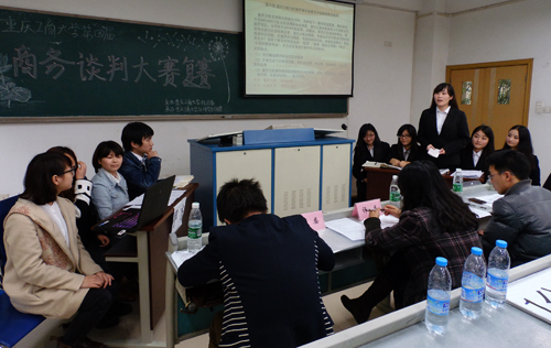 比赛以模拟商务谈判的形式展开,十二支队伍分成六组两两对决,谈判主题涉及教育、公路建设、石油等多方面内容。选手为维护自身利益,分别从谈判技巧、商务礼仪、个人风采等方面对商务谈判作了全方位的展示。
