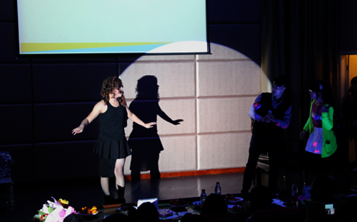 师生们欢聚一堂,共度了一个美好的夜晚。节奏感十足的热舞、动感充沛的现代舞、精美绝伦的汉服秀、个性十足的独唱歌曲《算你狠》、优雅动人的双人舞蹈《凤鸣动》、深情朗诵的诗歌《热爱生命·勇往直前·我们的微笑》、优美灵动的《碧波孔雀》……节目内容精彩纷呈,多姿多彩,现场氛围激情荡漾,充分展现了建筑装饰艺术分院与现代国际设计艺术分院学子们飞扬的青春。