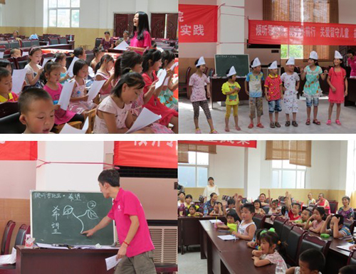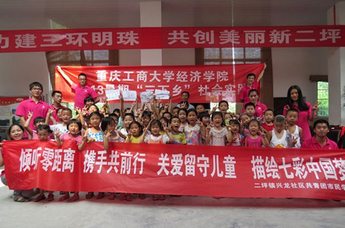 7月4日,实践团继续在铜梁县二坪镇兴龙社区共青团市民学校,开展以“教育帮扶,心灵沟通”为主题的关爱留守儿童系列活动。
