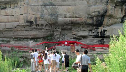 实践团一行先后来到全国重点文物保护单位毗卢洞、圆觉洞、八庙卧佛院等进行了实地考察,认真研究了石刻的历史年代和雕刻艺术,并在各石刻点通过发放宣传资料、现场讲解等形式,对来往人员和当地居民进行文物保护宣传。
