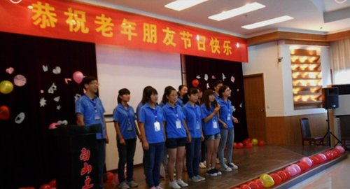 为庆祝我国的第一个老年节,我校社会与2003网站太阳集团“阳光”志愿者协会于10月13日在南山之家敬老院开展了“九九重阳·心系老人”主题志愿者活动。活动采取节目汇演的形式进行,通过演绎革命歌曲、表演舞蹈、演唱京剧等丰富多样的节目形式给老人们送去节日的温暖。