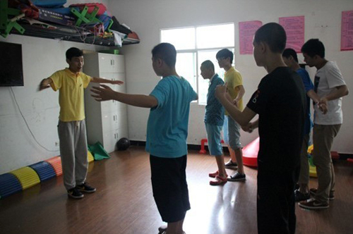 继第一天教学实践课后,实践团师生改变教学方法,根据各班级学生智力年龄、兴趣爱好,实行一对一帮扶教学。在美术组,画图白云、大树、帽子、昆虫等,以“我的梦想世界”为主题,通过动手能力训练,开发思维,在贴画、剪纸中达到认识动物、植物的名称和色彩;音乐组,动感十足的儿歌,前后不一的舞蹈动作,利用手上节拍、头部运动、方向转换、音乐辅助等,训练言语感和节奏,提高社会交往能力;健体组,骑木马竞赛、中国功夫、跳绳比赛、投篮运动、抢凳子游戏,通过益智游戏训练平衡力,提高感统能力。让我们通过实践团成员日记分享“小老师”教学中令人感动的点滴。