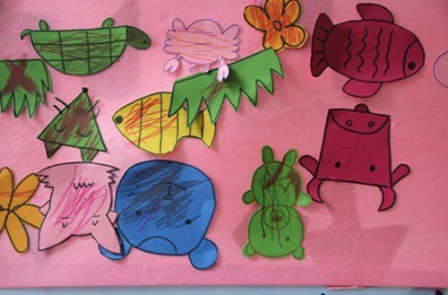 令我们开心的是,小朋友们看着我们提前为他们准备好的图画,能分辨出其中大部分的图案,让我们对今天的教学内容充满信心。课堂的气氛渐渐活跃起来,小朋友对我们的手工课表现出浓厚的兴趣。