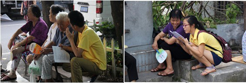 圆梦中国,公益先行。7月3日,文学与新闻学院暑期社会实践团第三天,在完成常规的梦想兴趣班教学工作外,针对智障儿童生活与教育、社区文化宣传现状展开了问卷调查。上午8:30,13名社会实践团成员分为两组,将早已拟好的智障儿童生活与教育现状及问题调查问卷和社区文化宣传现状问卷共计400余份派发到南坪东路社区居民、个体经营者、启明星智障儿童教师和学生家长手中,耐心引导居民认真填写问卷,针对其提出的相关疑问进行细心解答。其中,智障儿童生活与教育现状及问题调查问卷共涉及23个问题,涉及对智障儿童的了解和认识、社会对待智障儿童的态度、帮助智障儿童的方式、智障儿童教育情况等22个问题;社区文化宣传现状问卷包括对社区文化设施的建设情况、社区开展文化活动方式、居民满意程度、现存问题等25个问题。