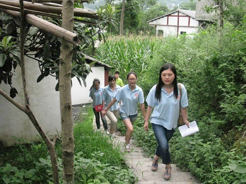 实践团队员们分为两组,采取分组走访的方式开展走访工作。一组通过对农村居住状况、旅游开发带来的影响进行调研,了解当地农村和农民生活的现状;一组则进行党的十八大精神、“中国梦”和安全卫生小常识的宣传,促进当地人们对党和国家政策了解掌握,普及科学文化知识。