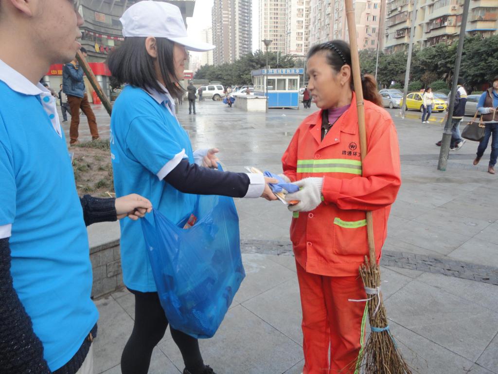 | 志愿者们帮助环卫工人 |