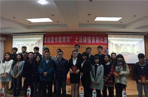 由法学院学生会举办的“法律情景剧”决赛于11月30日晚7点在慧智楼模拟法庭展开。出席本次比赛的有副院长刘勇、教授刘波、法学院分团委副书记袁栋及100余名师生带来了精彩的法律情景剧表演。