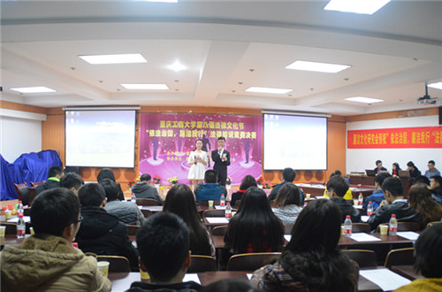 为增强全校学生的法律意识,提高大家对法律知识学习的兴趣。重庆工商大学法院于12月12日晚7点在重庆工商大学慧智楼模拟法庭举办“依法治国,廉洁我行”法律知识竞赛决赛。党总支书记李自维教授、团委书记刘鑫老师、院长杨和义教授、副院长刘勇教授、刘波教授及法学院师生代表均出席本次活动。