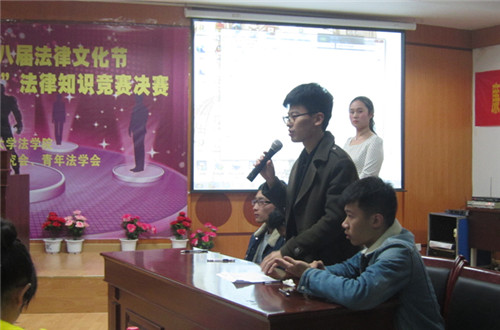 主持人简要介绍了比赛规则之后,真正的较量正式拉开帷幕。首先是管理学院与经济学院的对战,遥遥领先的管理队让经济队倍感压力,但经济队不乱阵脚冷静答题,经过一番激烈的拉锯战,经济队打破低气压格局,精彩获胜。幸运抽奖缓解了紧张的比赛氛围,紧接着是文新学院与通识学院的精彩比赛,文新队准备充分,轻松战败通识队。最后到了比赛最激烈阶段——冠亚军之争,比赛在一次又一次精彩绝伦的反超后到达白热化阶段,两队实力不相上下,经济队以细微差距夺得冠军。最后,法学院老师对参赛选手的表现逐一进行了点评。