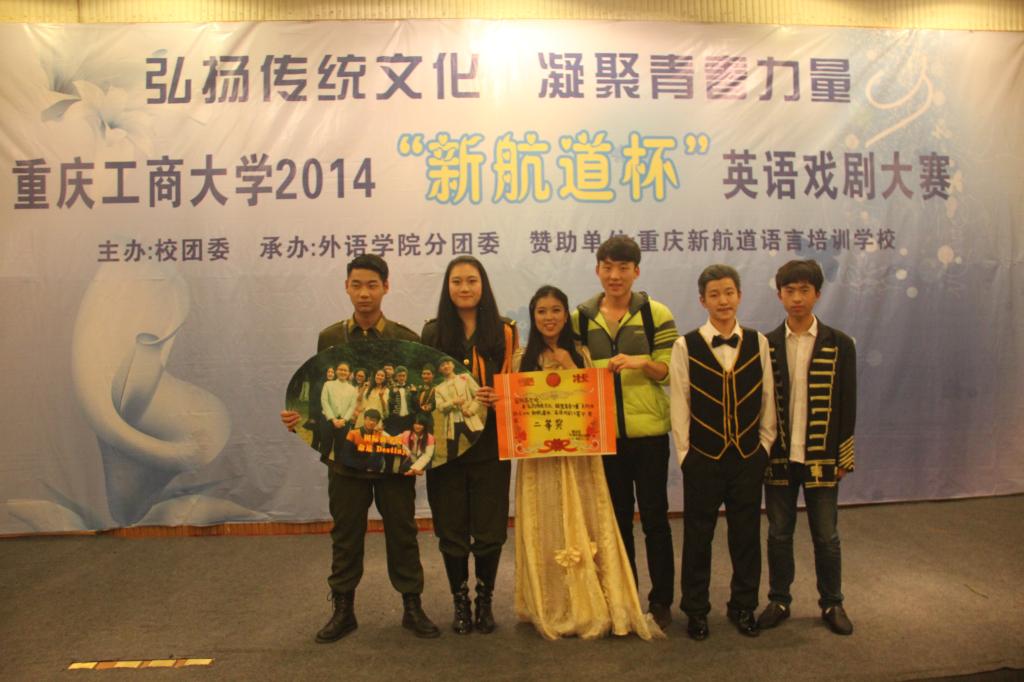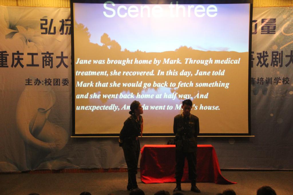 本次决赛共有来自国际商学院、管理学院、传媒艺术分院等八支参赛队伍。在八支队伍的短片介绍后比赛正式开始,首先是国际商学院“Newforce”团队带来的《Destiny》,话剧讲述了战争年代,复仇少女与痴情军阀间的爱恨情仇,演员们纯熟的英语口语、精湛的演技和丝丝入扣的情节,令现场观众赞叹不已,现场掌声连连。管理学院的《The Merchant Of Venice》和外语学院的经典话剧《Cinderella》受到了观众们的一致好评。经过评委公正打分和认真商榷,最终确定管理学院获得一等奖,国际商学院与传媒艺术学院并列荣获本次大赛的二等奖,最佳男主角和女主角分别被管理学院和现代国际设计艺术分院的同学斩获。最后,许青青老师和王立平老师为本次大赛的获奖选手们颁奖。
