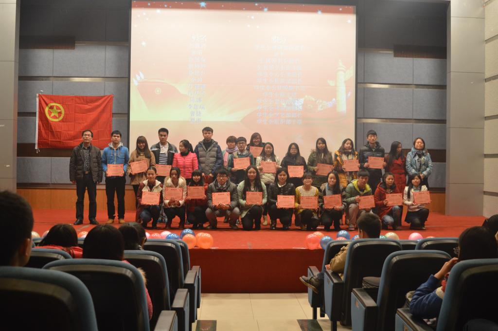 在活动中同时进行了团校培训优秀学员的颁奖,由党总支宋海雨副书记、分团委书记谭彩荷老师为优秀学员进行颁奖祝贺。活动最后,谭彩荷老师对此次活动进行了总结,提到这次活动正是凝聚力的表现,并祝同学们期末取得好成绩,新年快乐。