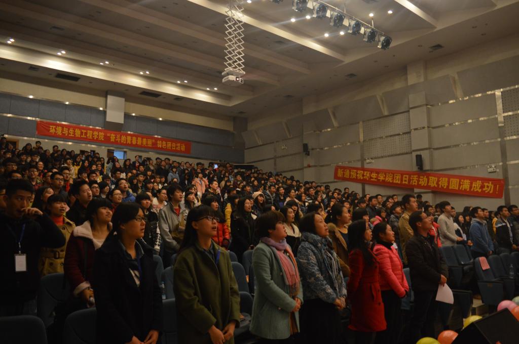本活动以奋斗的青春最美丽为主题,由宋海雨副书记致开场辞,在全场起立一起唱完共青团团歌之后,开始第一个环生学院特色节目——《环保时装秀》。随后有小品《一路向西游》、舞蹈《歌舞青春》、朗诵《我的青春在路上》、舞蹈《白白的裤子黑黑的哥》、话剧《青春梦》,最后以歌曲串烧作为压轴。每一个节目都透露着青春色彩。