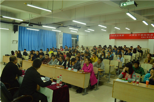 为了更好地帮助学生干部解决内心的困惑,提升自己的能力,3月27日晚18:30,机械工程学院学生会主办、2012级龚朝进同学承办的“名企高管对话工商精英”讲座在博智楼7222举办。活动荣幸地邀请到新东方重庆分公司总经理兼GRE名师、重庆商会委员曹亮老师、西南政法大学校友企业家协会秘书长和重庆高管俱乐部副秘书长唐海陵老师主讲,并由大学生就业指导老师胡伟担任主持。机械工程学院分团委书记邢月军老师及各年级学生干部参与了本次讲座。
