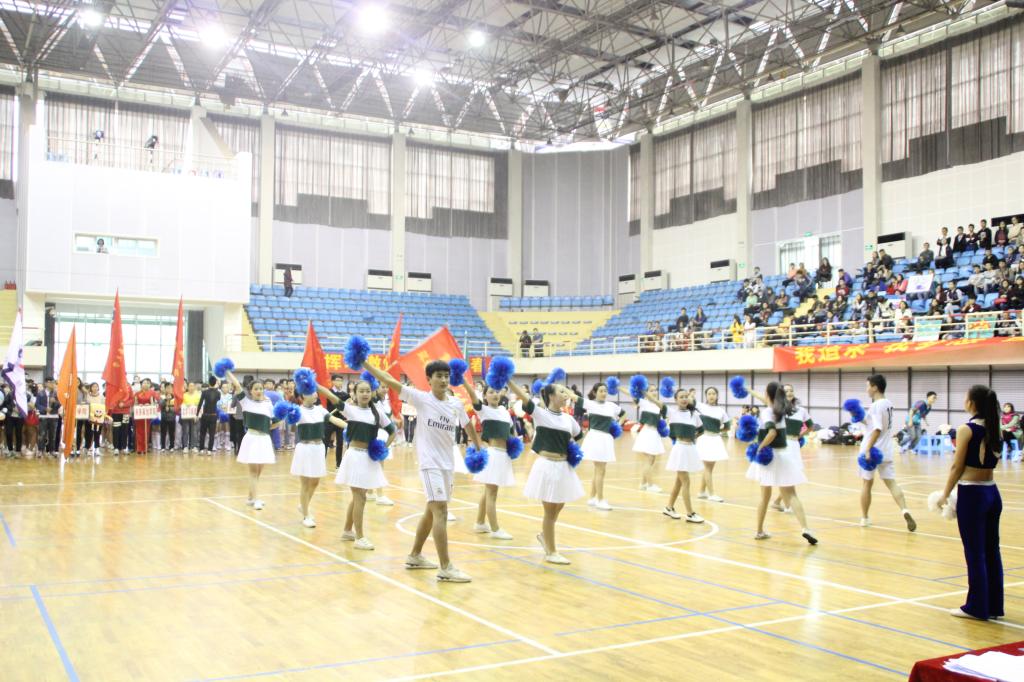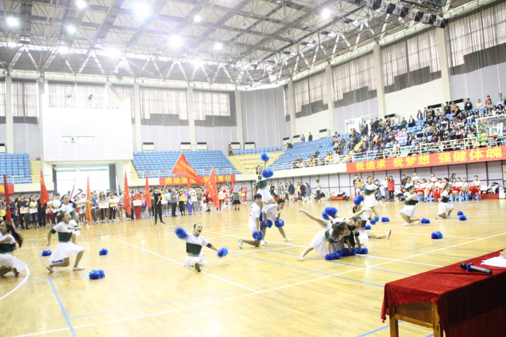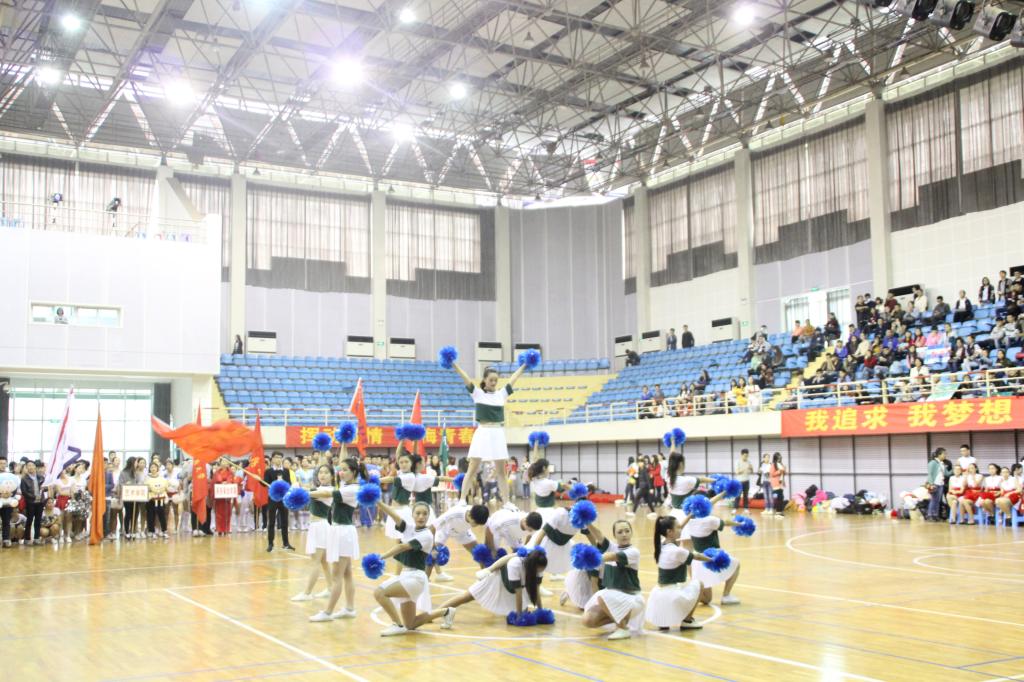 在开场的各代表队风采展示中,环资学院啦啦操代表队以自编动作在众学院中独具一格,赢得在场观众和评委的掌声,同时也展示本院学子不一样的风采和积极向上的精神面貌。全体代表队啦啦操表演时间,全体代表队一起齐跳《小苹果》,把现场气氛带入高潮。之后各代表队开始规定啦啦操比赛,进行最后的正式比赛,环资学院啦啦操代表队从开场到最后现场掌声不断,从动作难度、动作整齐度、动作力度以及开场和结尾造型各方面得到评委和在场观众的一致肯定,并以总分448分的优异成绩排名第三(体育学院除外),斩获一等奖的佳绩。