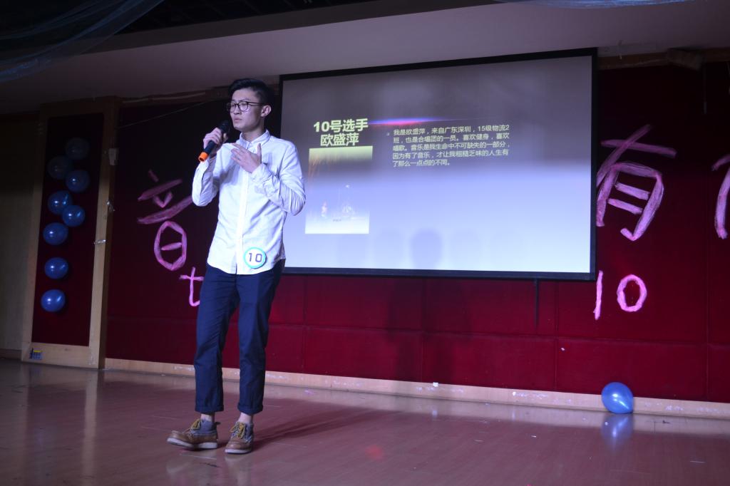 比赛在14位选手合唱的《离开地球表面》中拉开了序幕,台下的观众热情高涨,为每一位选手呐喊助威。本次大赛分三轮举行,首先由14位选手依次演唱,角逐出本届十佳歌手前十名,一首首悦耳动听的音乐让观众们享受了一场精彩的视听盛宴。随后,进入十进五帮帮唱环节,心怀梦想的选手们和他们的帮唱嘉宾为观众带来了一首首扣人心弦的歌曲,比赛过程中的观众互动竞猜歌名环节和一元五角游戏更是把现场气氛推向高潮,学长学姐们带来的表演也为比赛增添了不少色彩。最后,在五进三决赛环节中,12号选手周泰宇同学以一首《最长的电影》打动了评委和在场观众的心,夺得第一名,14号选手孔丽洁获得第二名,10号选手欧盛萍获得第三名。