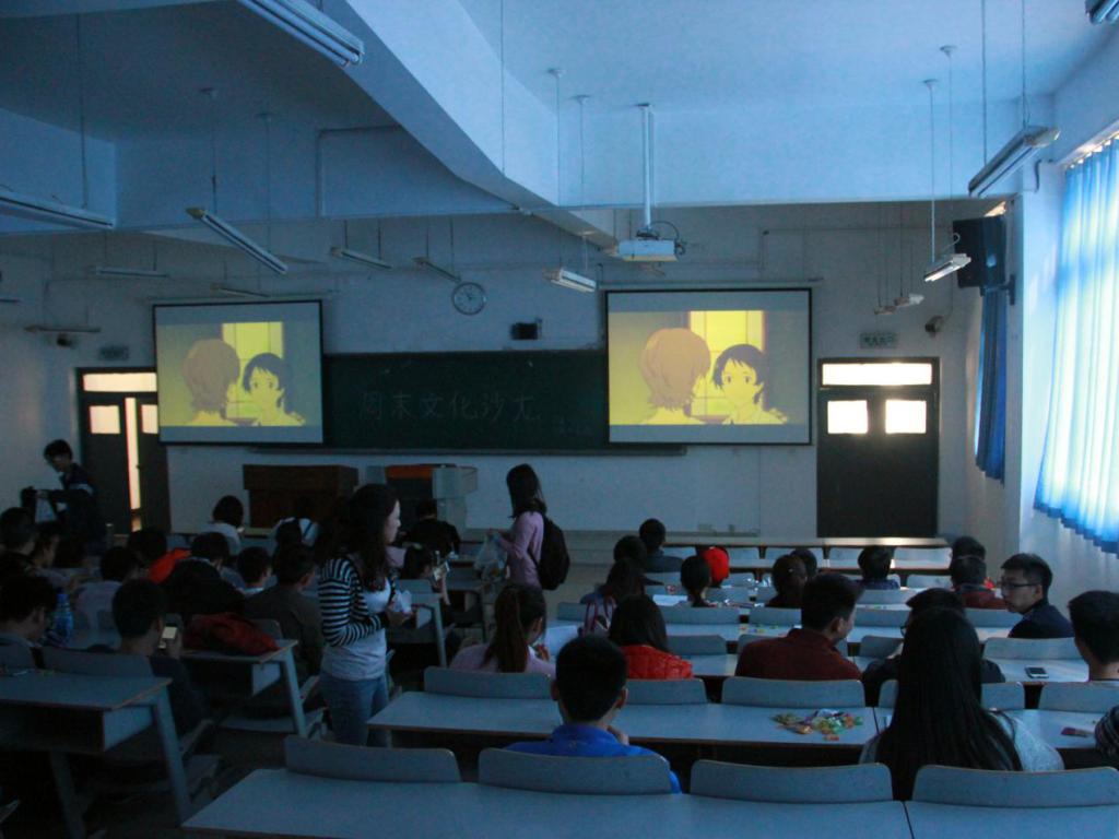 主持人简要的介绍了本次将要观看的影片《穿越时空的少女》后便正式观看。影片没有直白的讲爱情,没有刻意细腻的初恋表现出来的羞怯,却让观众们感同身受的看到了初次面对爱情时的抵触,排斥还有成长,暖色夕阳背景下,女孩哭声,音乐忧郁的响起,美妙的动画更加的动人心弦……整个影片的人物表情,情绪的表达,通过视觉控制着所有人的心,它让观众们如痴如醉。观看完影片,主持人道出自己的观影感悟“有多少人,想要回归到当初那些无忧无虑的欢乐时光。但是,成长却带给了我们太多的沉淀。当初那些单纯的美好,那些纯洁的梦想,以及那些不想改变的爱情,却早已消失不见。而我们只有把握现在,才能创造自己满意的未来。”最后,主持人宣布此次周末文化沙龙圆满结束。