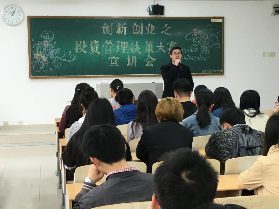 3月4日下午,投资管理决策大赛宣讲会于重庆工商大学主校区博智楼07212顺利举办。财政金融学院党总支副书记刘代成、学团办主任兰丽娟、分团委书记徐阔、学生党支部第三支部书记余红霞以及上届投策冠军ictbu的创始人之一白鸽作为嘉宾出席本次宣讲会。