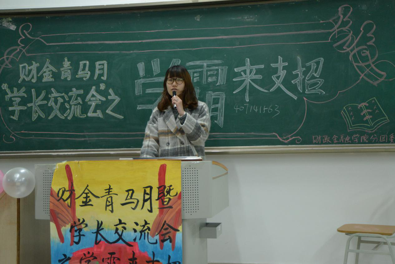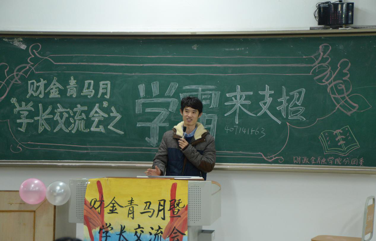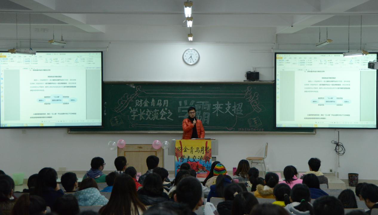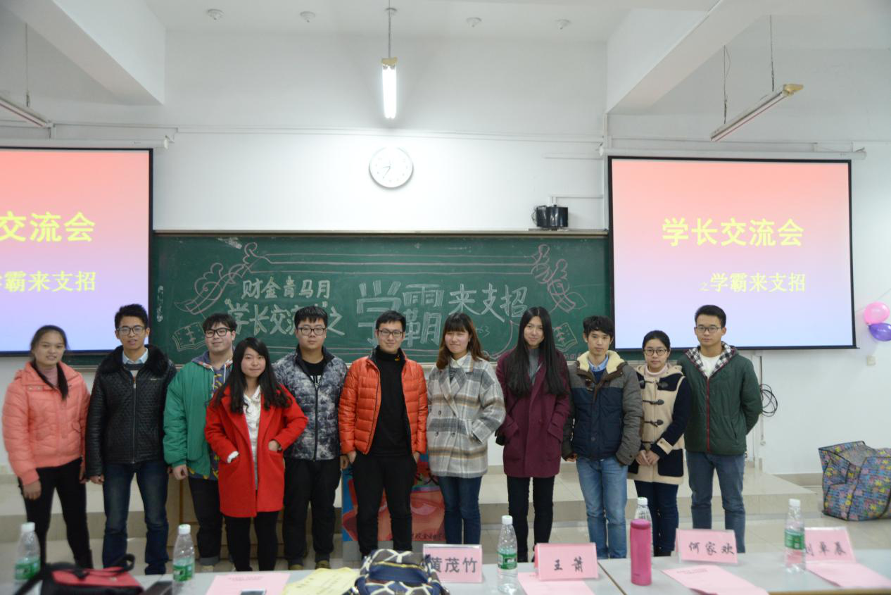为了让同学们更加清晰未来学习目标和规划,在学习生活中能有更好的协调。重庆工商大学财政金融学院于12月16日下午在主校区七教07421教室举办“学长交流会之学霸来支招”的主题活动。本次活动以邀请4位不同形式的学霸的学长学姐们,为新生们支招。优秀的学长学姐13级税务2班的王萧,13级金融2班刘卓成,13级保险2班蔺夫泽,13级投资2班的何家欢来到现场和大家分享他们的学习生活。同时财政金融学院分团委副书记王博,财政金融学院分团委学生会副主席王庆峰、李超、黄茂竹作为嘉宾参与了本次活动。