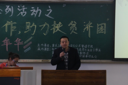 随后,袁琳主任也发表了讲话。她说,社工服务的对象广泛,来源已久。并对社会工作专业的发展作介绍。从成立,发展,扩大到如今,甚至与美国韦德恩签订长期协议,如今已被评为重庆市“三特行动计划”“特色专业”。