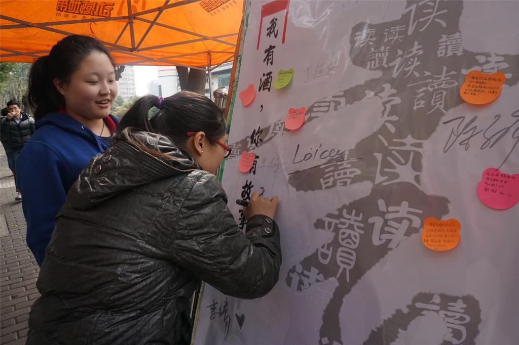 经过近两小时的场地布置,活动于11日14:00正式开始。活动开始前,所有书籍被分为交换、借阅、免费赠送三大板块。由于活动形式新颖,一开始便吸引了众多同学的目光,他们主动向工作人员询问问题,部长和干事们也十分耐心地为他们答疑解惑。了解到这次活动的主题内容后,越来越多的同学加入到以书易书的阵营中来,他们不仅积极地同工作人员交换书籍,同时也向大家分享了自己阅读的心得和故事。12日上午,一位来校散步的准妈妈听说有此活动也积极参与其中。经过简单的易书工作后,工作人员赠送给了这位准妈妈两本养生杂志作为未出生小宝宝的“见面礼”,希望宝宝能够健康快乐的成长。“一人有一本书,交换之后他便拥有了两本书”,一位参与者脱口而出。言语通俗易懂却细思深刻,其中不仅有获得更多知识的喜悦,更有对活动的莫大赞许和肯定。