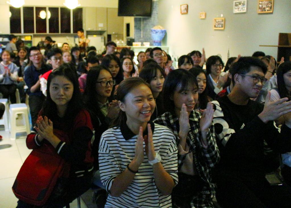 团日活动主持人以生动而幽默的开场白将同学们带入本次团日活动中。首先,外语学院15级法语班的熊俐娴同学以一首法语版《小幸运》让大家仿佛沉浸在一个青涩而懵懂的画面中,拉开了本次活动的序幕。接着,国际商学院法语班外教Pière正式带我们开启了一段法语文化旅程,用地道的法语为我们介绍了包括文化,艺术,历史在内的多元化法国知识。通过老师细腻的表达,同学们感受到了他对家乡一丝一缕倾诉衷肠般的厚爱,同时也让我们对法国有了进一步的了解与向往。在国商16级黄烨玮同学优雅而自然的大提琴演奏后,15级法语一支部的几位同学也积极上台与大家分享法国文化和异国风情。与此同时,外教 Emmanuel也情不自禁地唱起了法语歌。最后,本次活动在同学们的掌声中圆满结束。
