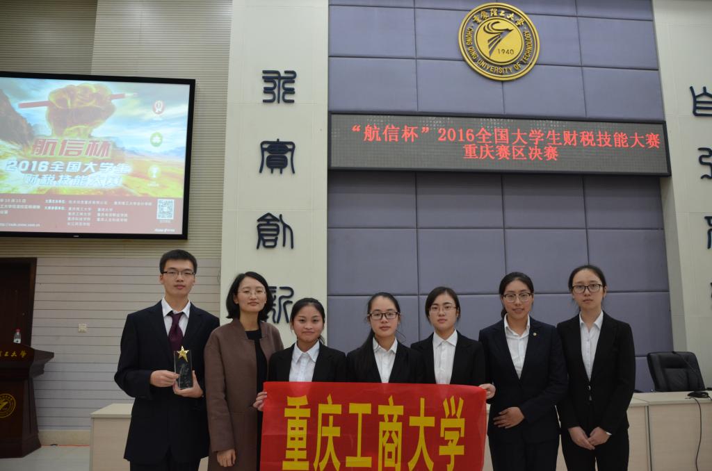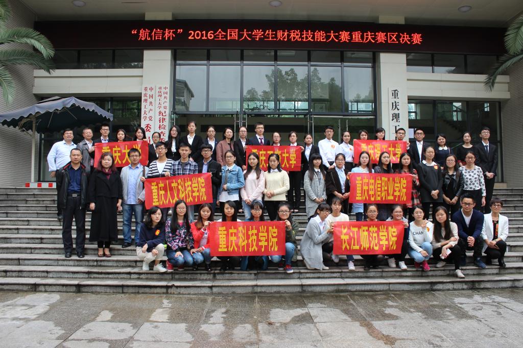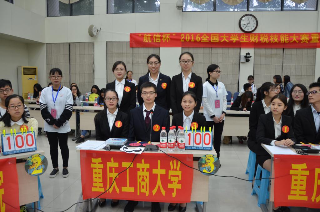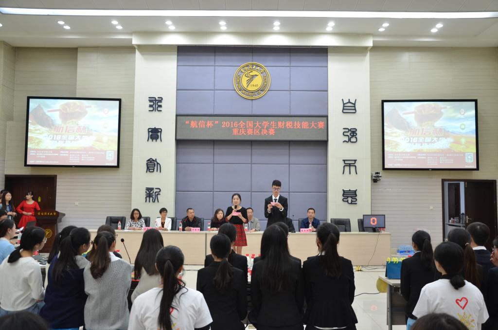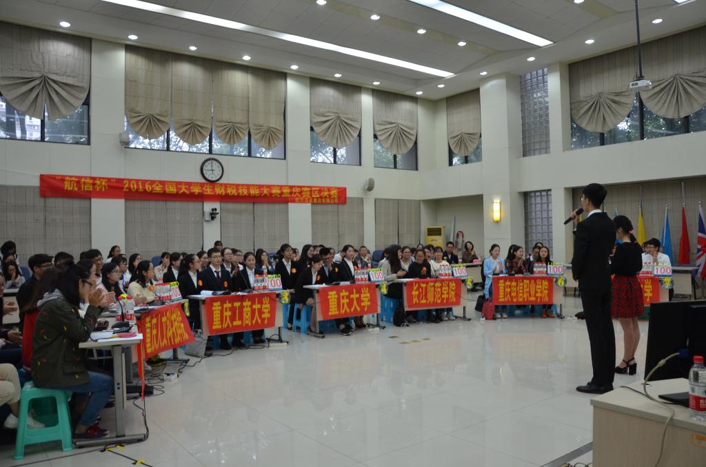 10月15日,航信杯2016全国大学生财税技能大赛重庆赛区决赛在重庆理工大学花溪校区明德楼129会议室举行。重庆理工大学会计学院党总支书记兼副院长阎建明、航天信息股份有限公司市场营销部产业化培训部经理姜宁、重庆理工大学教务处副处长张红民、航天信息重庆有限公司行业拓展事业部总经理杨忠、重庆理工大学会计学院党总支副书记李鑫、航天信息股份有限公司大区经理杨克辉、航天信息培训学校自有财税讲师张亚兵、航天信息培训学校自有防伪税控讲师李金莲出现大赛并担任评委。财政金融学院余红霞老师带队,刘润哲等六名同学代表重庆工商大学参赛。