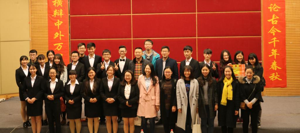 此次辩论赛决赛共分为立论、盘问、驳论、攻辩、自由辩论以及总结陈词六个环节。经过正反双方成员简洁的自我介绍后,双方就本次辩题——“社会进步主要靠大众还是靠精英”展开激烈辩论。辩手们在各环节中思路清晰,逻辑严密,引经据典,字字珠玑。其中,双方选手就“改革开放带来的社会进步究竟是由邓小平等精英推动还是由人民群众的实践检验推动”这一问题展开深入分析与辩论,一度将比赛推向高潮。在双方四辩总结陈词后,整场比赛告一段落,评委离席打分,接下来,财金辩论队为大家上演了一场精彩绝伦的表演赛,赢得阵阵掌声,接着由学生会副主席庞世强学长对本次比赛进行点评,徐阔老师对本次活动进行总结,最终,由主持人宣布比赛结果,反方队伍15级税收二班荣获第十五届“财金杯”辩论赛冠军,正方队伍16级CFA获得亚军,正方四辩徐晓获得本次比赛“最佳辩手”称号。获奖选手与之前已经决出的季军15级金融四班代表队、15级金融五班代表队和多位优秀辩手共同参加颁奖仪式,并与老师们一起合影留念。