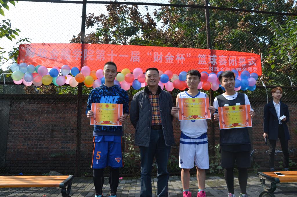 随后,进行了篮球赛的闭幕式,刘代成书记和徐阔老师为获奖队伍和优秀球员颁奖。至此,历时44天的财政金融学院第十一届“财金杯”篮球赛在阵阵掌声和欢呼声中落下帷幕。