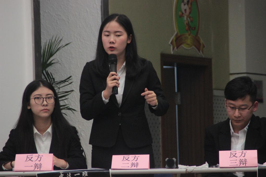 在本次比赛中,工商一班以“公益事业商业化运作利大于弊”为正方,中法一班以“公益事业商业化运作弊大于利”为反方。首先,比赛一开始,双方辩手神采飞扬,双方一辩互不相让,列出一系列的论点支持自己的观点。然后,在正反方盘问环节时,反方二辩妙语连珠,赢得满堂喝彩。紧接着,自由辩论环节,辩手们唇枪舌战,针锋相对,将本场比赛推向了高潮。在下一个环节时,双方四辩在攻破对方的漏洞之后,对各自的辩题进行了深入的总结。在观众提问环节时,现场十分活跃,多名观众各抒己见,扩大了该辩题的参与度。最后,由评委校辩论队队长肖海对本次比赛进行点评,并由主席宣布最佳辩手为反方二辩肖洁岚,获胜方为正方工商一班代表队。