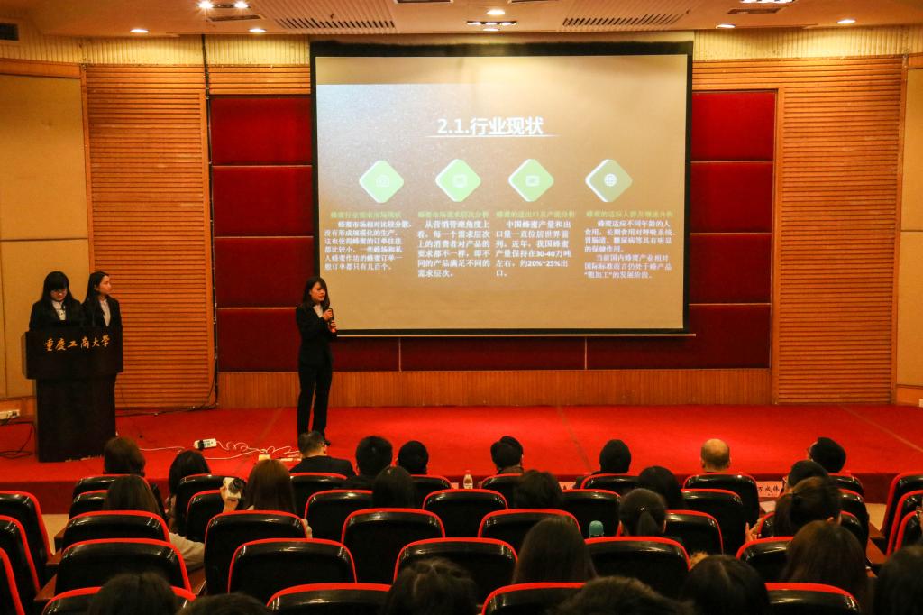 管理案例大赛从每年的10月开始初赛到次年的3月决赛,迄今已是第四届。每一届的复赛和决赛都会从市场中选择一个真实的企业让参赛团队进行调研分析,并形成案例报告。此次案例研究对象是重庆寿禄养蜂股份合作社的产品滞销和企业管理问题。经过复赛的激烈角逐,暗夜星芒、香樟小组、火眼金睛、哔哩哔哩、十万伏特、黄金搭档、两广夹渝共七个队伍进入决赛。各个参赛队伍都对合作社面临的问题进行了分析,并且尝试用所学知识对现有的问题提出了相应的解决方法。决赛中,每个队伍轮流展示各自的研究成果后,还对台下评委提出的问题进行了一一答辩。比赛参赛选手与各位评委老师的思想激烈碰撞,令在场的观众深感受益匪浅。